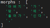 먼저 형태소에 대해 조금 알아보자면 형태소의 사전적 정의는 '의미를 가지는 요소로서는 더 이상 분석할 수 없는 가장 작은 말의 단위' 이다. 예를 들어, '아버지가방에들어가신다' 라는 문장을 형태소로 나눠보면 ['아버지', '가', '방', '에', '들어가', '신다'] 이런 식으로 나올 것이다. 명사, 동사, 조사, 접두어 등으로 문장을 나눈 다음 본인이 원하는 과정을 처리를 하면 된다.